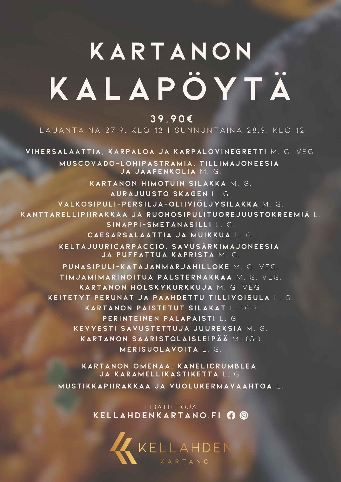 Tuvas tarjol kaffet, leivoksii, lohileipii, lohisoppaa sekä tiätysti perinneruakaa ohrakryynivellii ja rusinasoppaa.