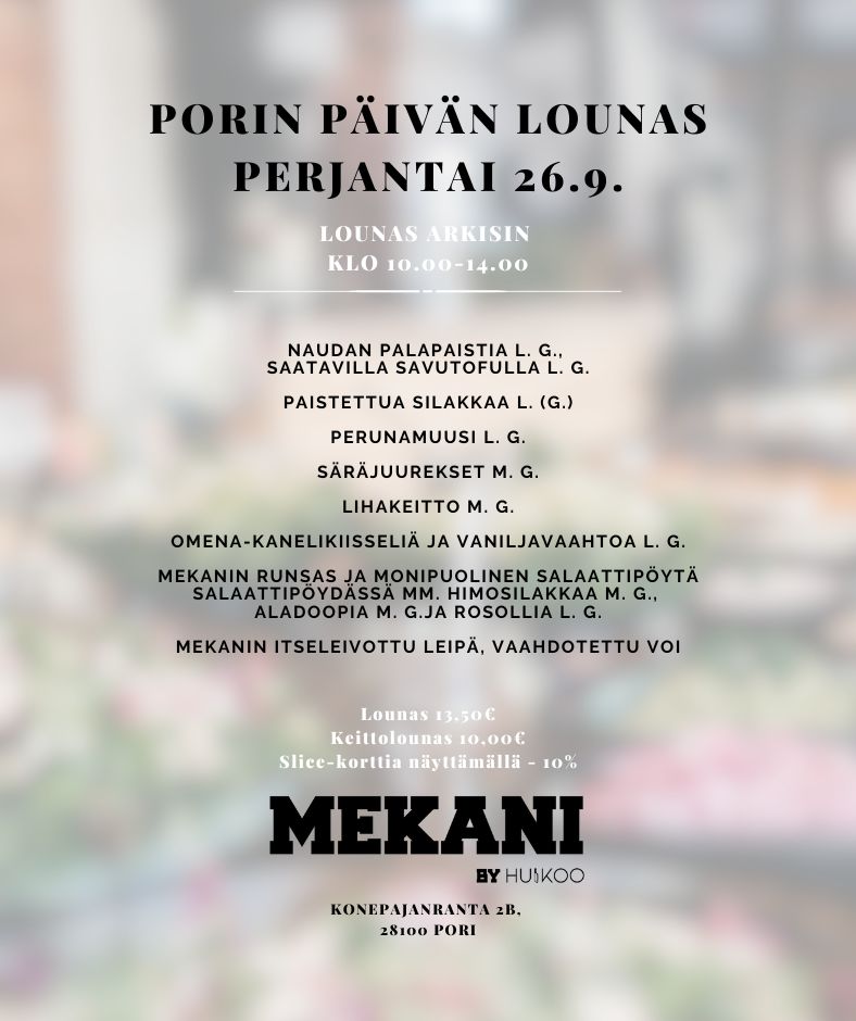 Mekanissa tarjoillaan Porin Päivän lounas.